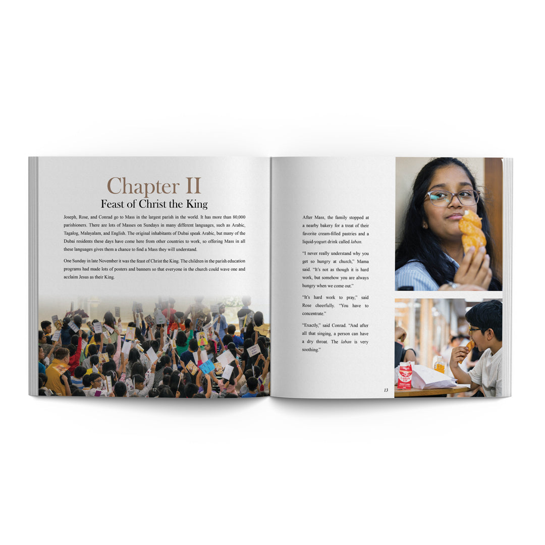 Desert picnics, Arab markets, dodgeball in the sand, and a visit to an epic skyscraper will appeal to the young reader. The children’s parish is the largest in the world, with thousands of parishioners who have come from other nations to live in Dubai. The book includes brief references to the Desert Fathers and a discussion of the role of Christ as King.