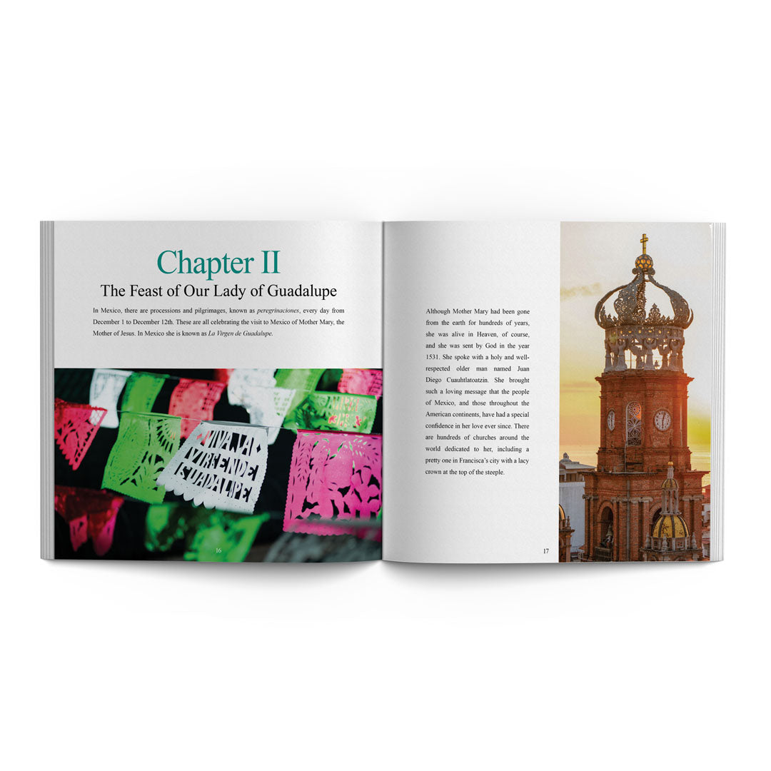 The high-spirited young girl of this story enjoys all the ancient and beloved traditions of Advent and Christmas seasons in Mexico as she makes piñatas with her mother, takes part in the posada procession, attends midnight Mass, and enjoys ring cake on the Feast of the Magi! She dances with a group that leads several of the Guadalupe processions, as Mexico's celebration of the Feast of Our Lady of Guadalupe!